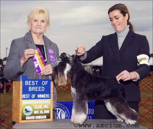 Pilot went best of opposite at the World Show in Stockholm 2008 in an entry of 177 black and silver miniature schnauzers.