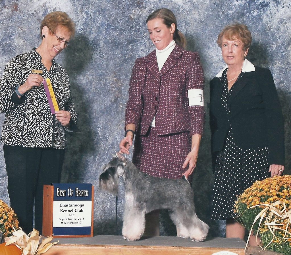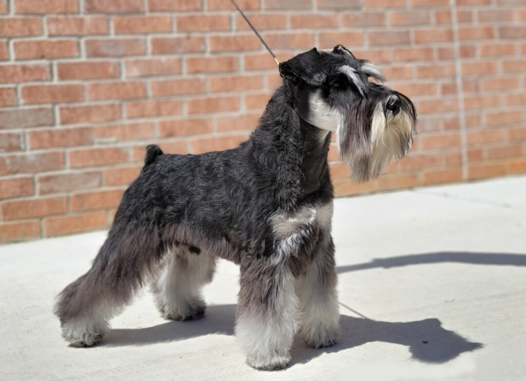 Ty is a small stylish salt and pepper male with an outstanding coat, and lots of personality! He is co-owned with Michael and Nichole Donaldson.