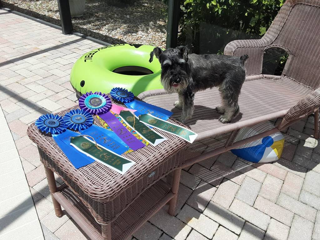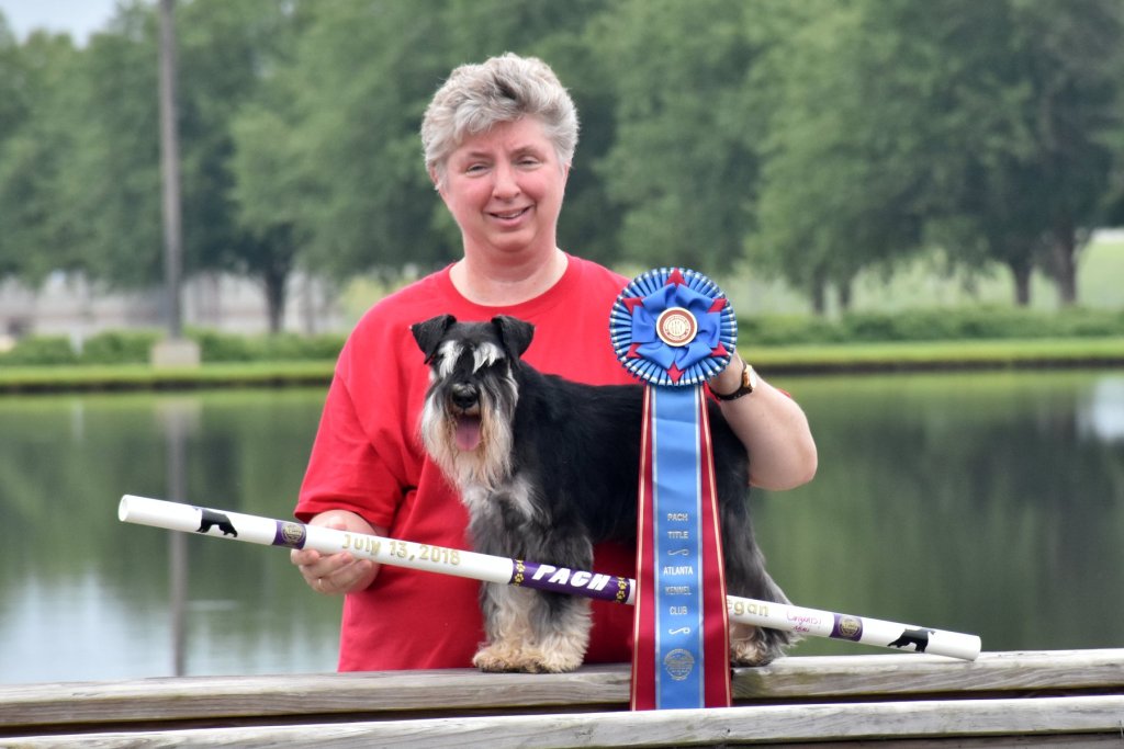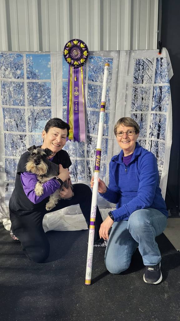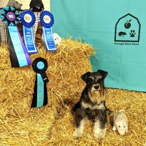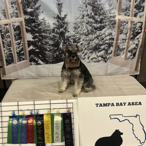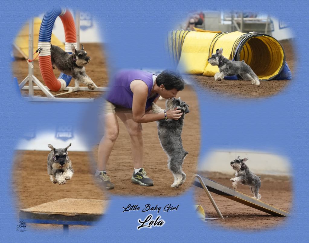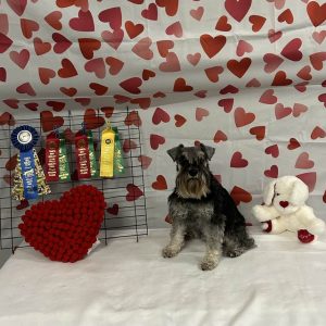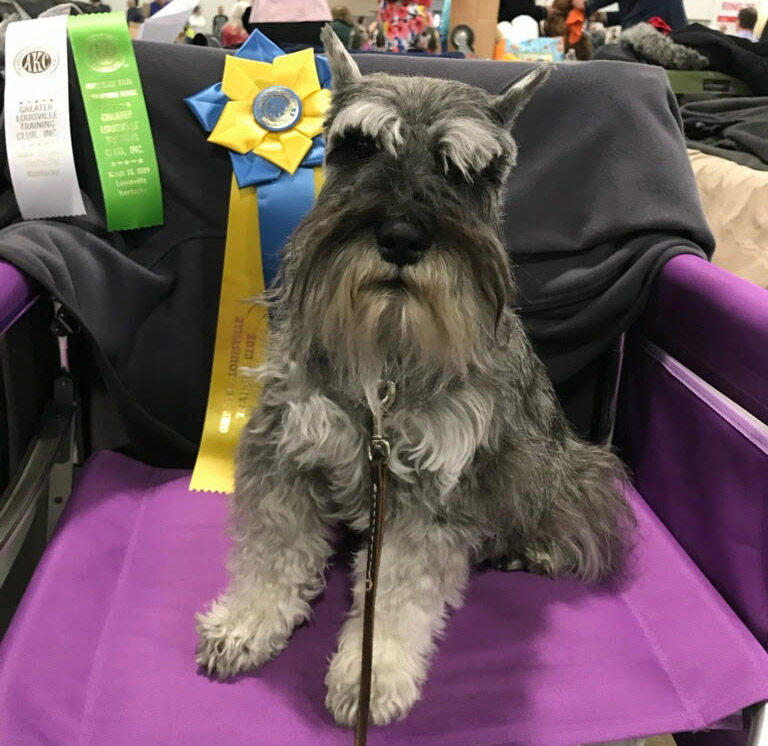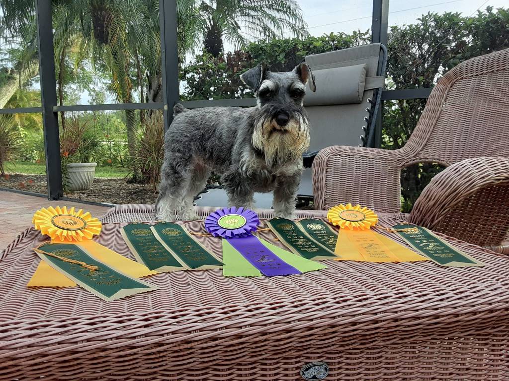 Beauty and Brains: Finney is both a Confirmation Champion and an Agility Champion! He earned his Master Agility Championship (MACH) and then went on to earn 3 Preferred Agility Championships (PACH) titles. Finney started his career as an AKC S.T.A.R. Puppy and a Canine Good Citizen. He went on to earn advanced titles in Obedience and Rally. His true love is Fast CAT and Barn Hunt where he also earned advanced titles. He has the American Miniature Schnauzer Club Versatility award. He finished 16 th at the 2018 AKC National Agility Championships in the 8” preferred class! He qualified for Agility Nationals 4 times in his career. He is by far the most awarded Axcium dog and is the father of Binx! He still barn hunts and runs Fast CAT at almost 13 years of age. He is co-owned and loved by Lisa Miller. Finney trained at Canine Capers Agility in Norcross, GA, Atlanta’s Dogwood Obedience Group (ADOG) in Chamblee, GA, and the Atlanta Obedience Club in Norcross, GA.