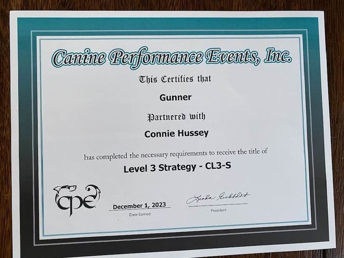 Gunner is a versatile little man! He earned his Canine Good Citizen award and titles in obedience, rally, trick dog and CPE agility. Gunner recently earned his Intermediate Rally title in one weekend of competition! Gunner is owned/trained/handled by Connie Hussey in the Wake Forrest, NC area.