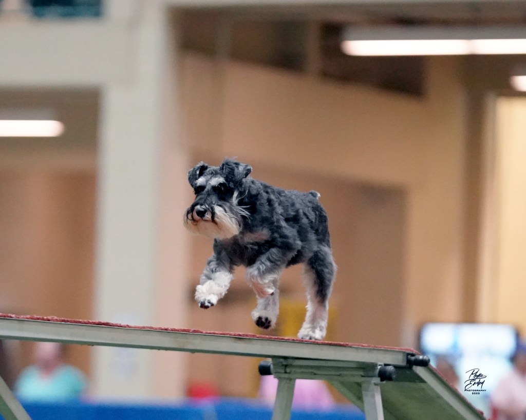 Axcium Miniature Schnauzers excel in Performance, Companion Dog and Family Dog Sports! They have participated in the STAR Puppy and Canine Good Citizen programs, trick dog, agility, barn hunt, Fast CAT, CAT, Dock Diving, Obedience, and Rally.Let’s take a look at what these sports are all about!
