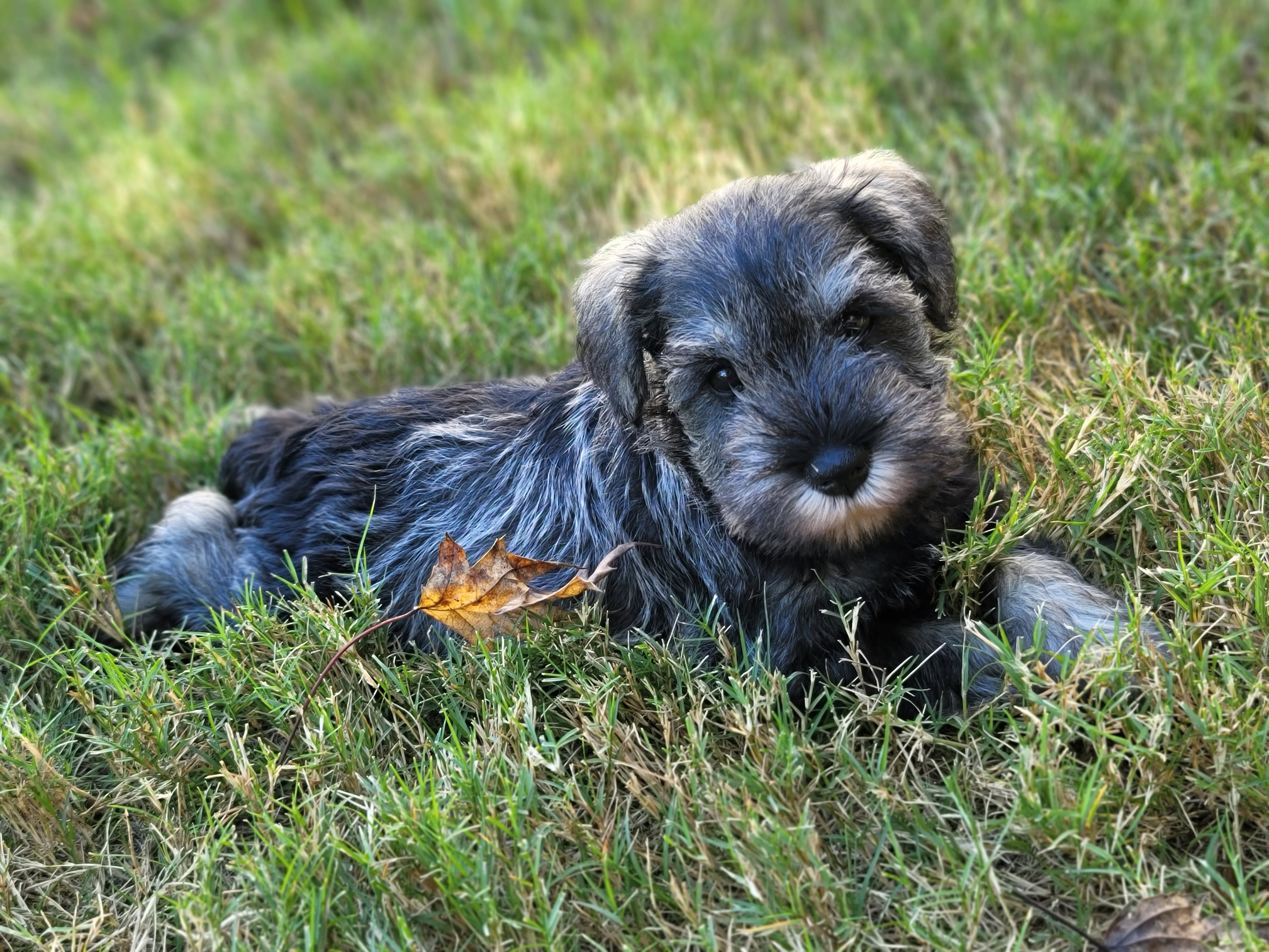 When does the mature true coloring of the miniature schnauzer show? My female was born black but is lightening up